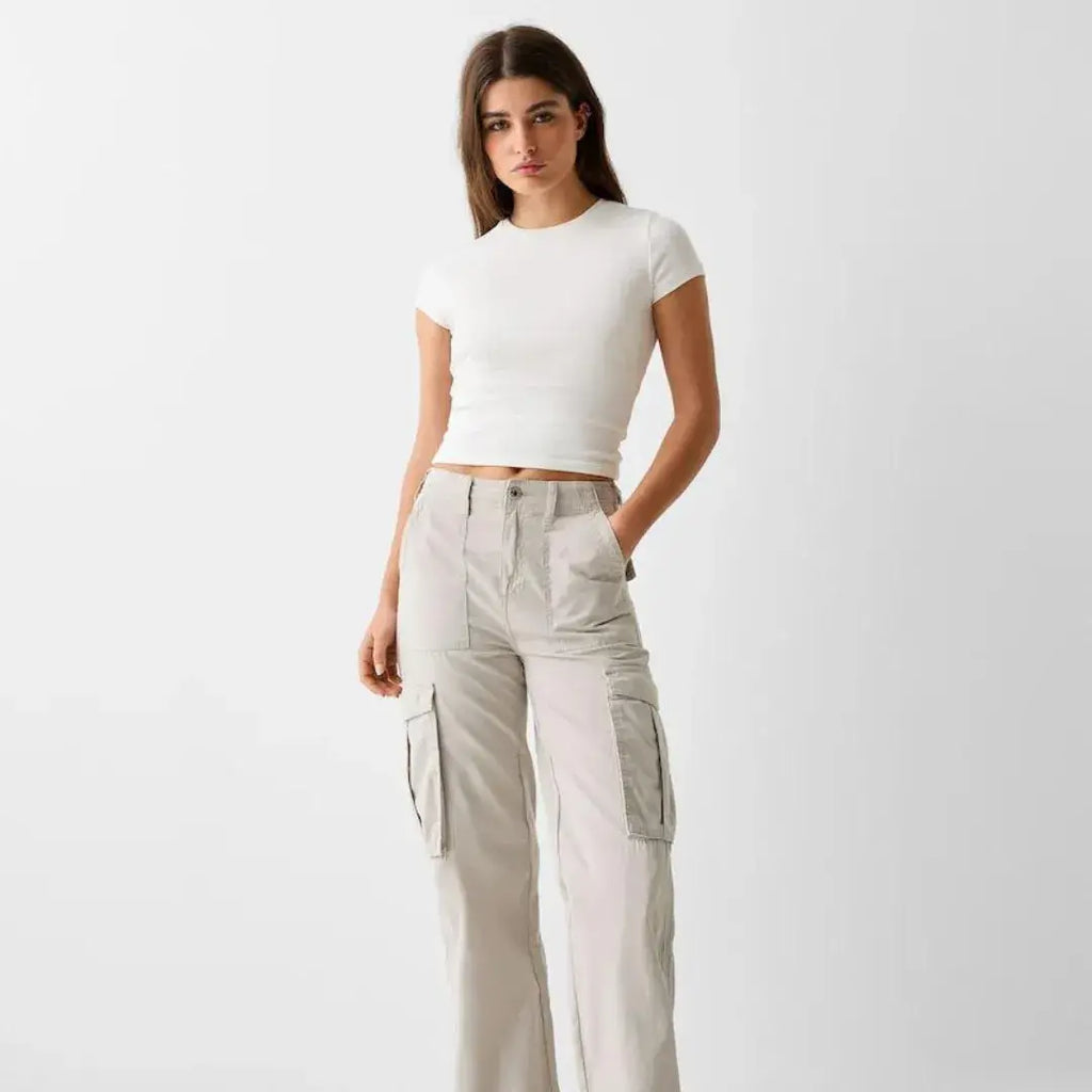 Medidas da modelo: Altura 165cm - Tamanho 36 Material: Poliéster Estilo da calça:Calça Cargo Estilo: Casual Tipo de cintura: Mid Tipo de ajuste: Slim fit Tipo de tecido: Casimira premium Garantia: 30 dias